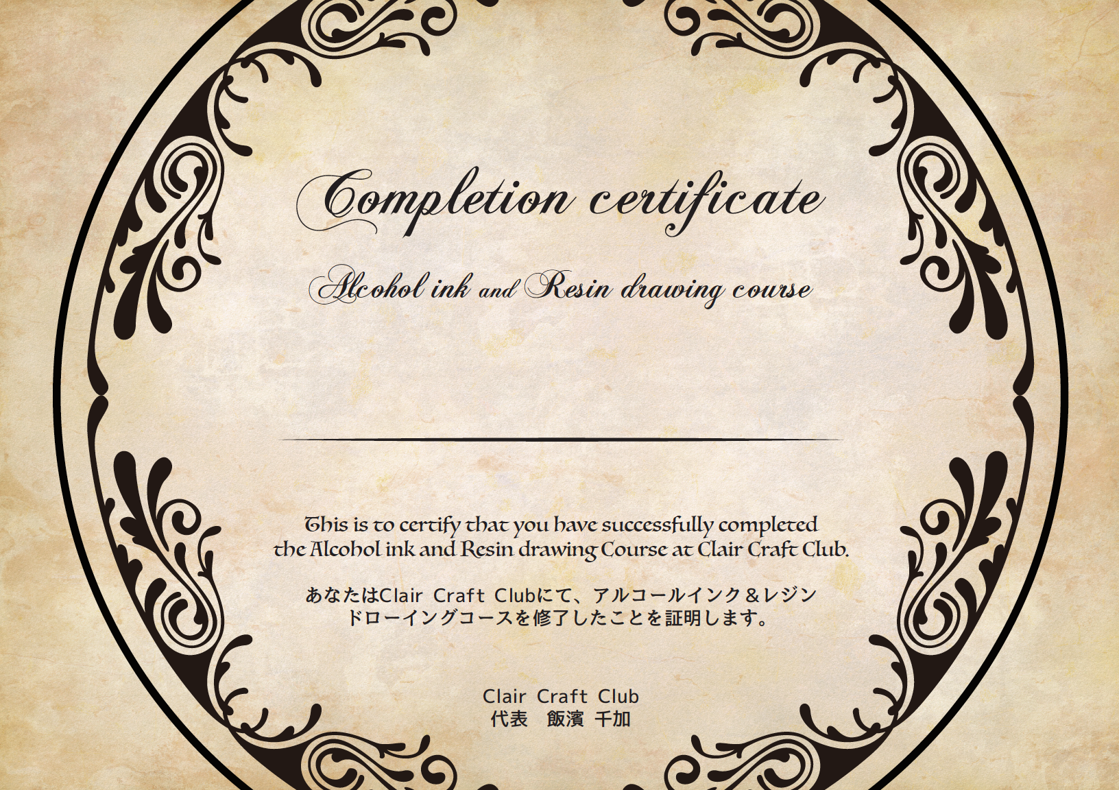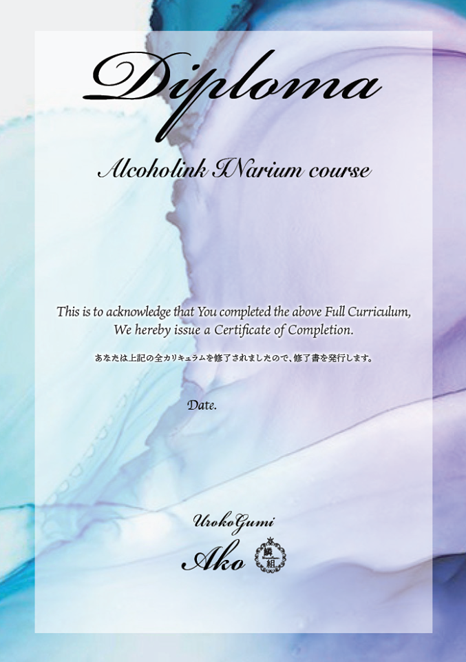 ・インアリウムアルコールインクアート認定レッスンは受講後会員になることができる一般社団法人インアリウム協会が定めるディプロマコースになります。